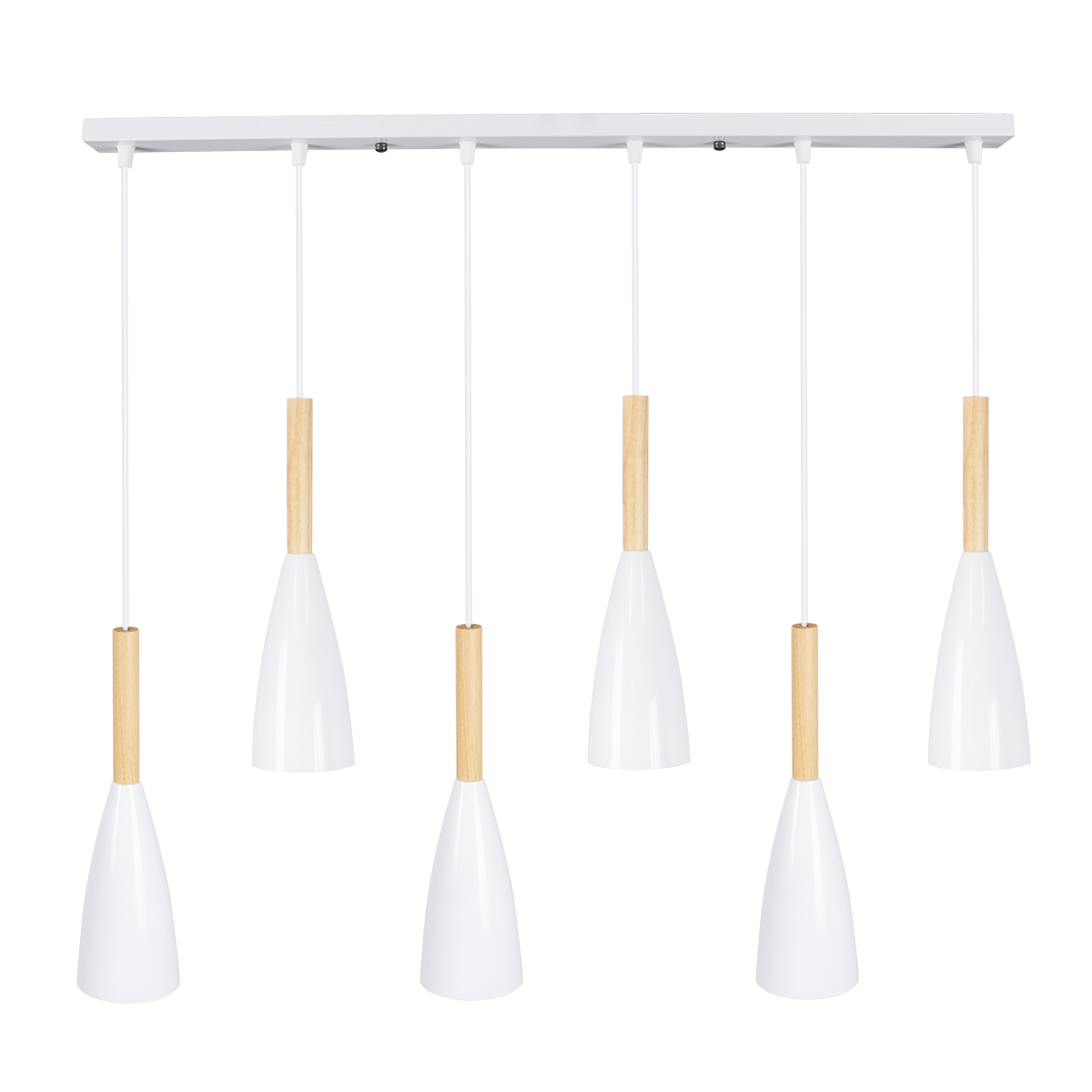 GloboStar® DILLON 00633 Μοντέρνο Κρεμαστό Φωτιστικό Ράγα Πολύφωτο 6 x E27 IP20 Λευκό Μέταλλο με Μπεζ Ξύλο – Μ84 x Π14 x Υ130cm
