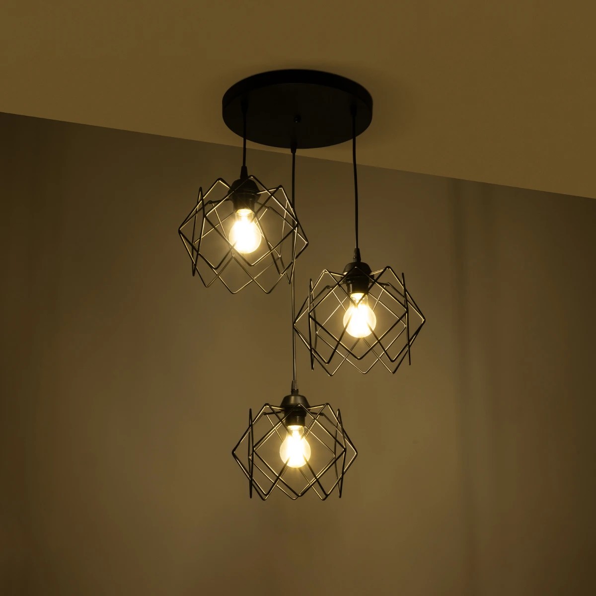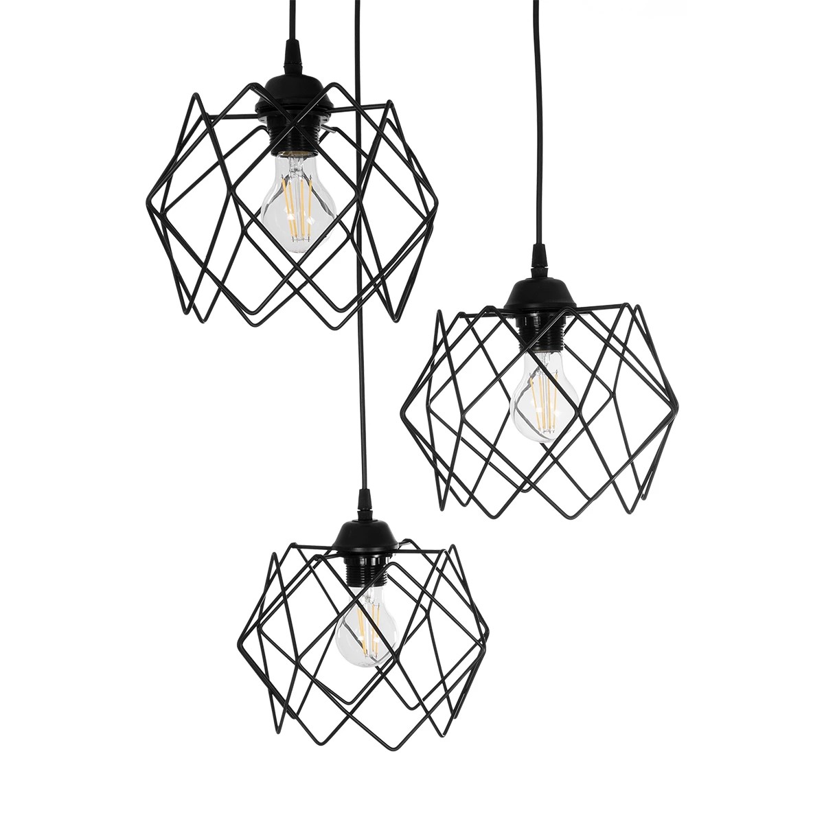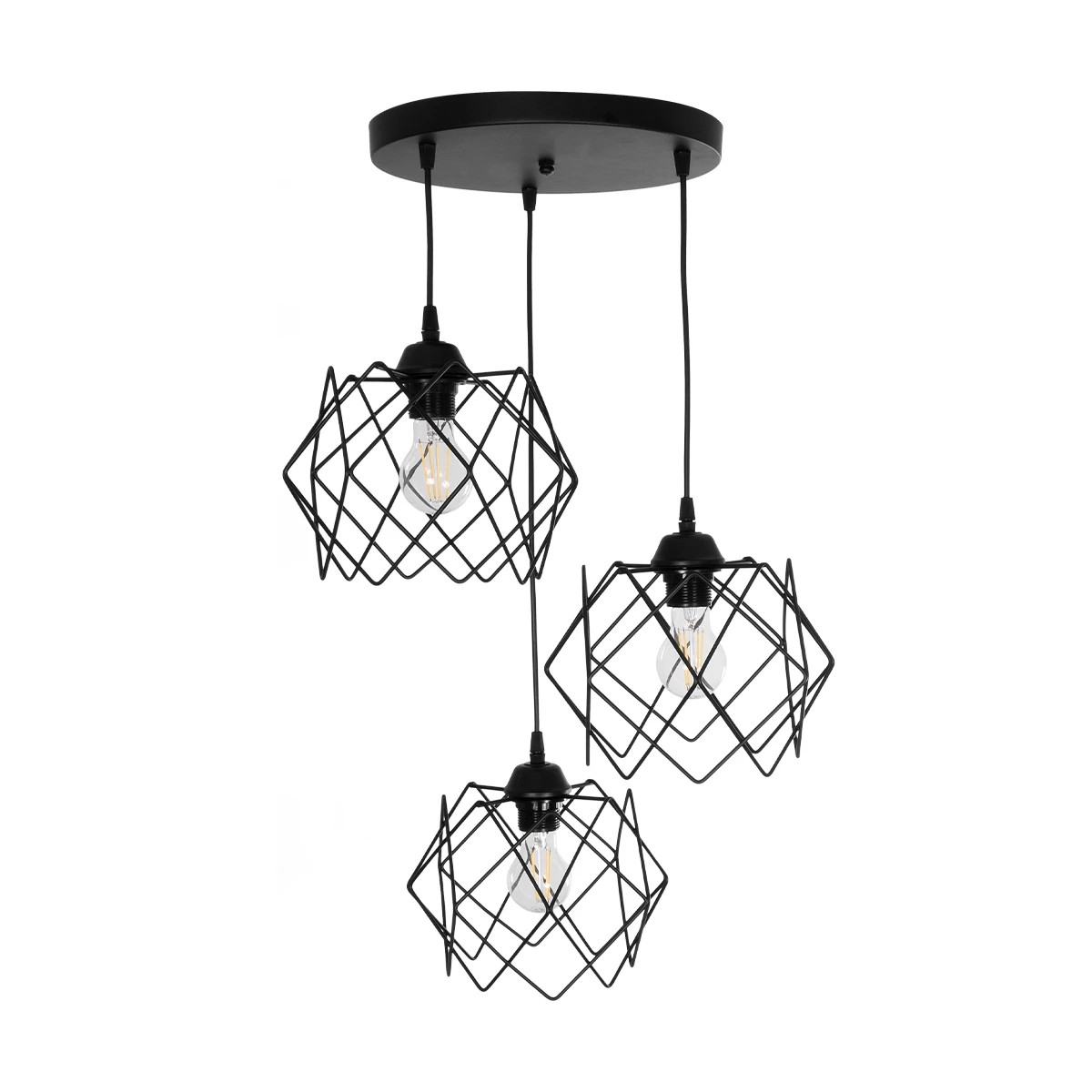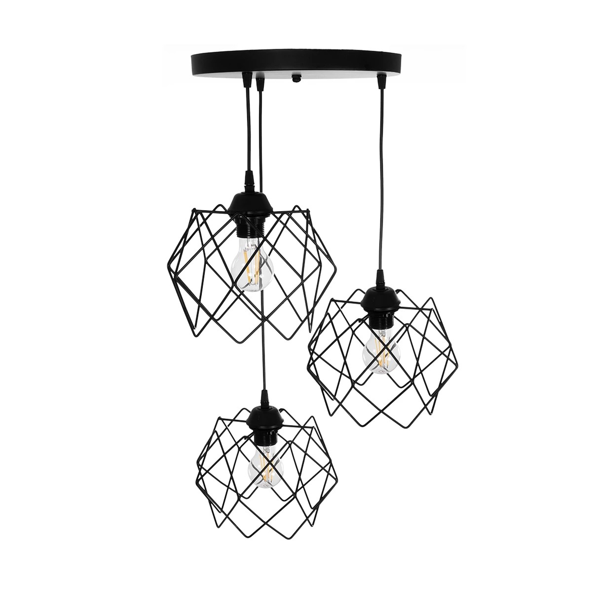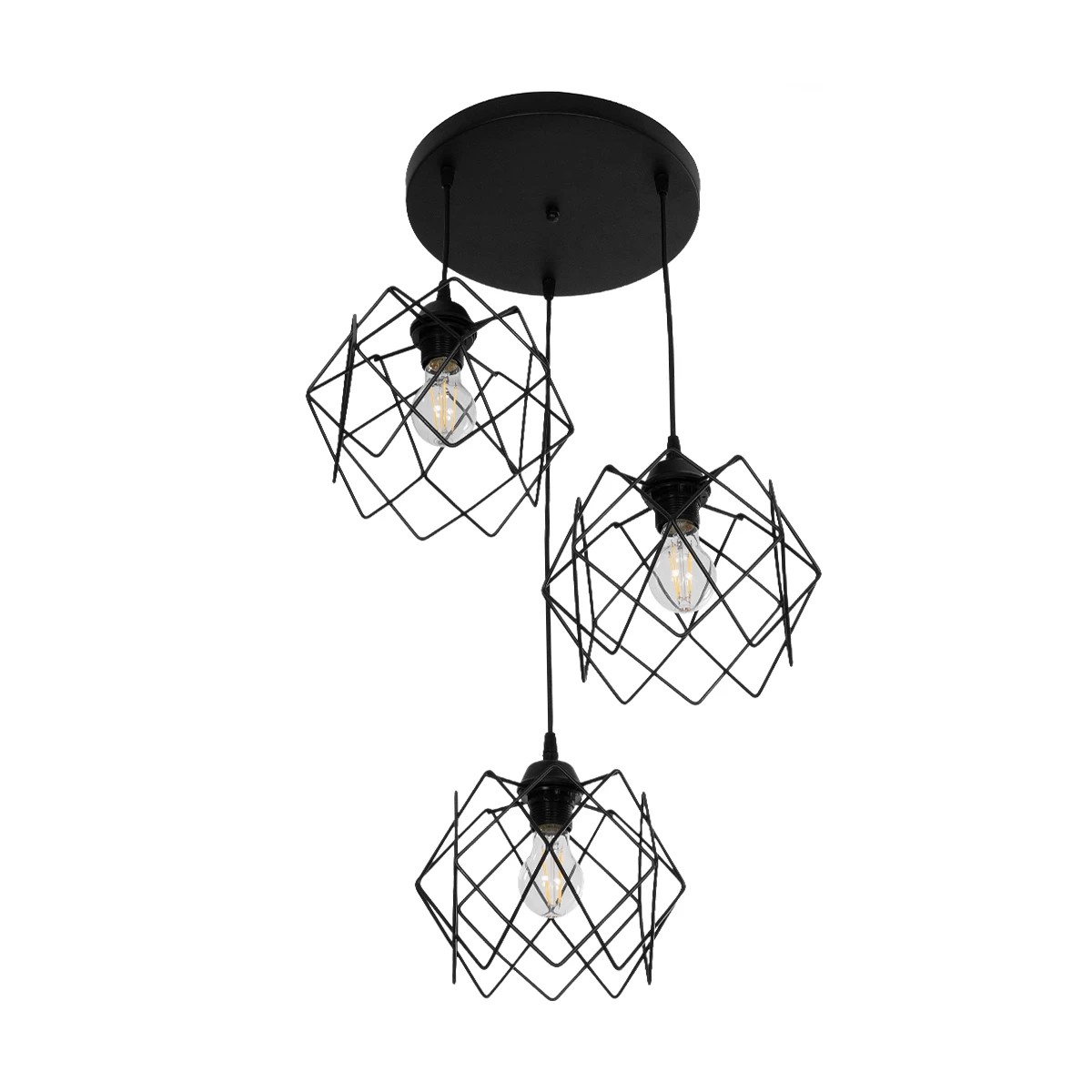 GLOBOSTAR® DAZLA 201-0024 Vintage Κρεμαστό Φωτιστικό Οροφής με Ντουί 3 x E27 AC 220-240V IP20 – Μαύρο – Μ47 x Π47 x Υ60cm
