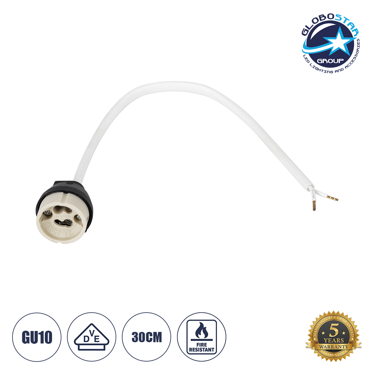GloboStar® LAMPHOLDER 60499 Ντουί GU10 Πορσελάνης με 30cm VDE Καλώδιο & Anti-Fire Protection High Resistance Tube – ᐊVDEᐅ Certified – IP20 – Φ3.5 x Μ32cm – 5 Years Warranty