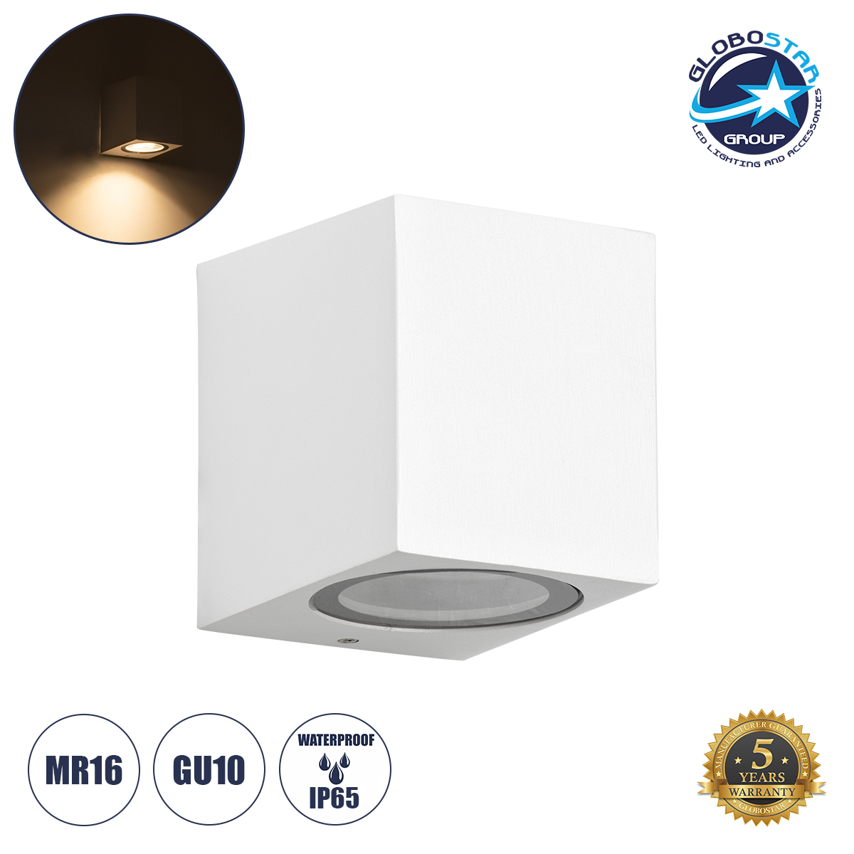 GloboStar® BURANO 60611 Φωτιστικό Τοίχου – Απλίκα Αρχιτεκτονικού Φωτισμού Εξωτερικού Χώρου Up or Down Αλουμινίου με Ντουί 1 x GU10 AC 220-240V Αδιάβροχο IP65 Μ8 x Π8 x Υ6.8cm – Λευκό – 5 Years Warranty