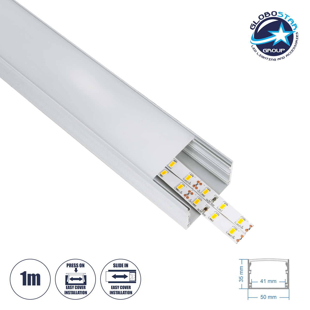 GloboStar® UNDERGROUND-PROFILE 70860-1M Προφίλ Αλουμινίου – Βάση & Ψύκτρα Ταινίας LED με Λευκό Γαλακτερό Κάλυμμα – Ενδοδαπέδια Χωνευτή Χρήση σε Δρόμους – Πατητό Κάλυμμα Υψηλής Αντοχής & Ανθεκτικότητας σε Βάρος – Ασημί – 1 Μέτρο – Μ100 x Π5 x Υ3.5cm