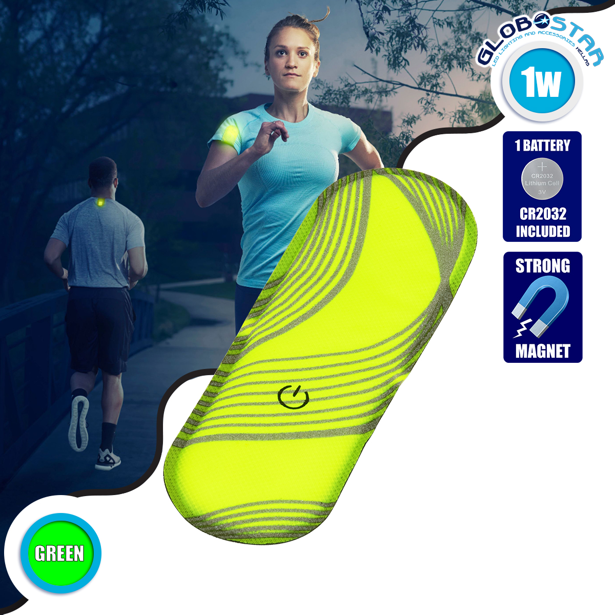 GloboStar® 79073 Μαγνητικό Clip Ασφαλείας Φωσφοριζέ Αντανακλαστικό για Ποδηλάτες & Runners με Φωτεινή Σήμανση LED & Μπαταρία CR2032 – Αδιάβροχο IP65 Λαχανί Φωσφοριζέ
