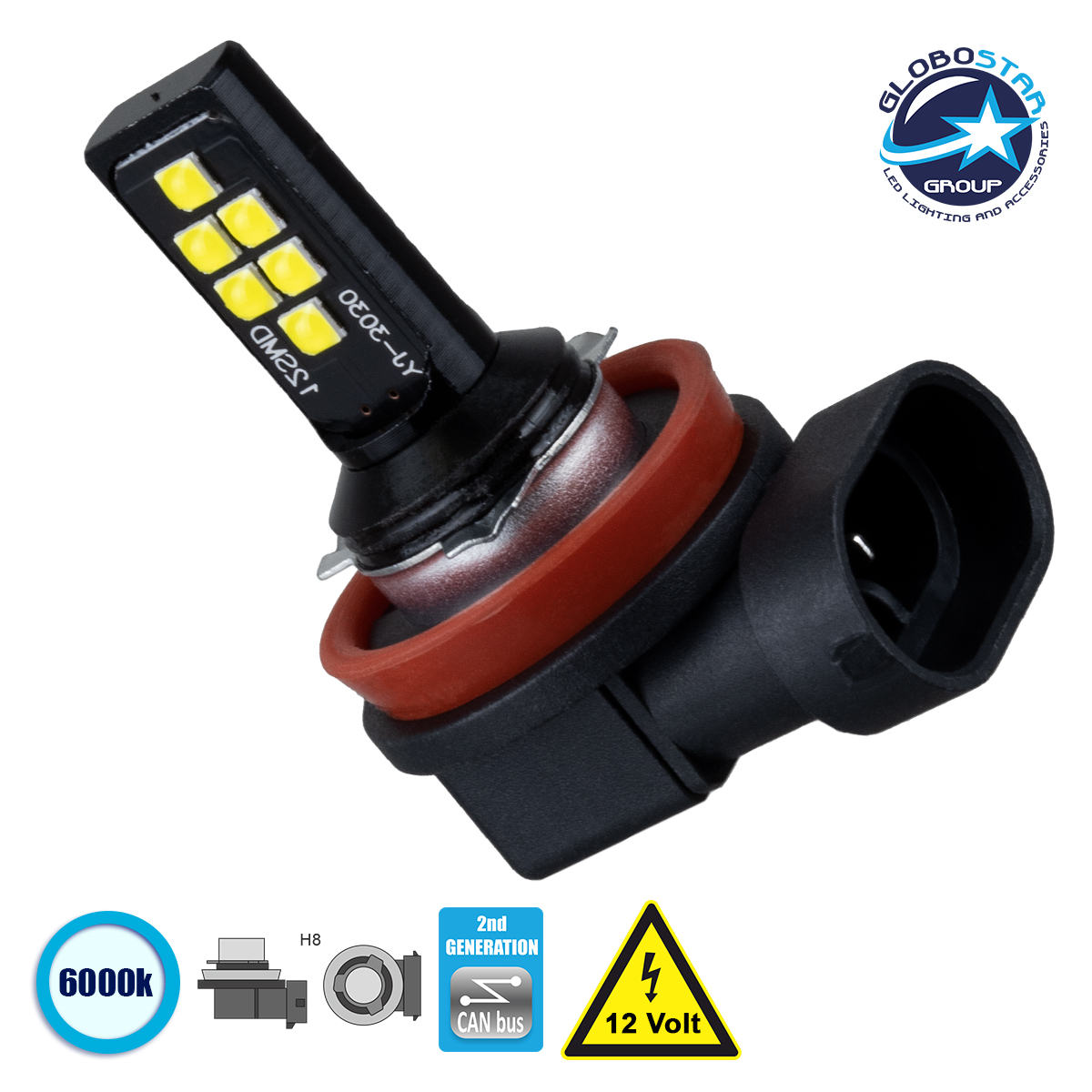 GloboStar® 81448 Λάμπα Αυτοκίνητου H8 2nd Generation Can-Bus Series LED 12 SMD 3030 4W 440lm 360° DC 12V IP20 Ψυχρό Λευκό 6000K