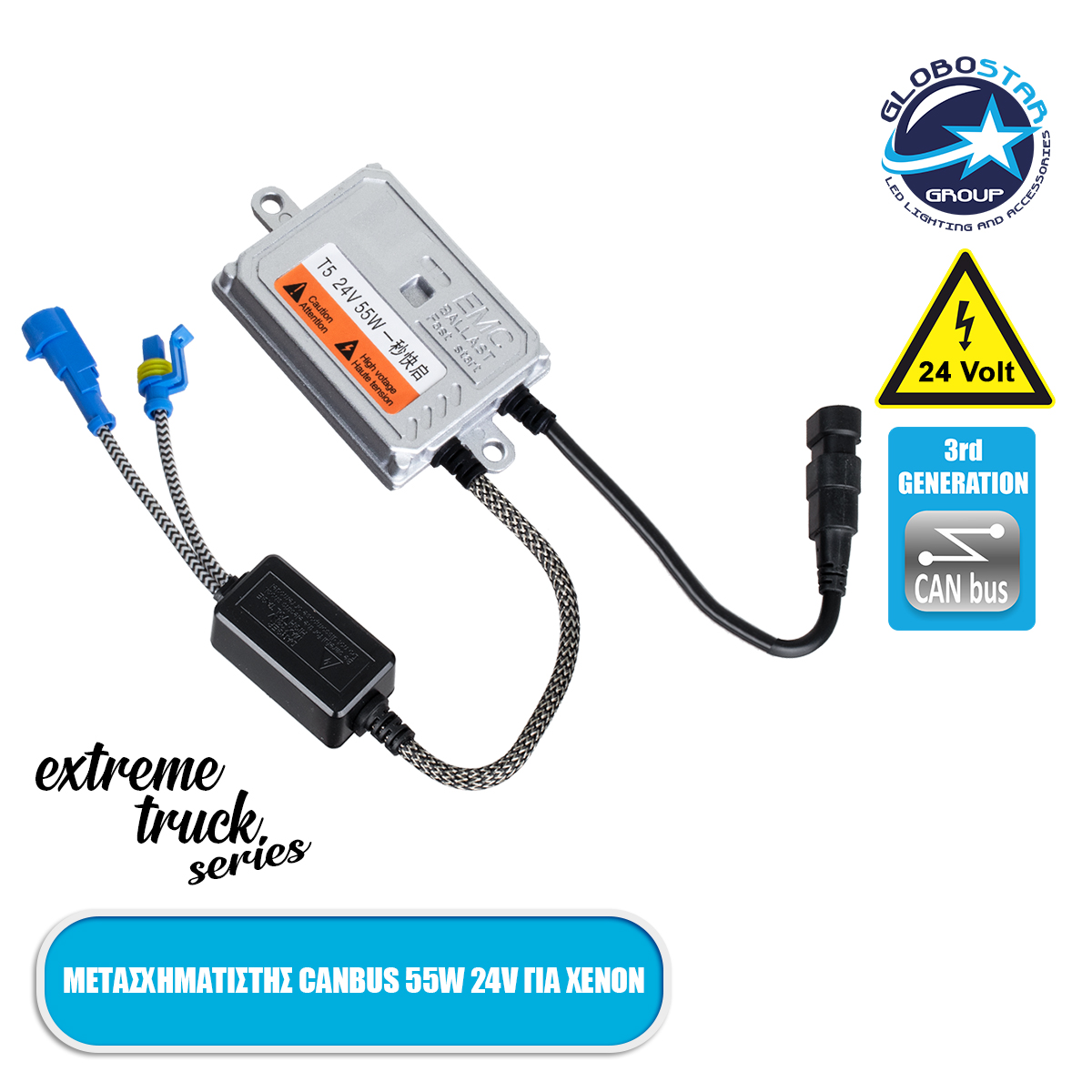 GloboStar® 84054 Μετασχηματιστής Slim Xenon AC Ballast 3rd Generation Can-Bus Extreme Truck Series 24V 55W