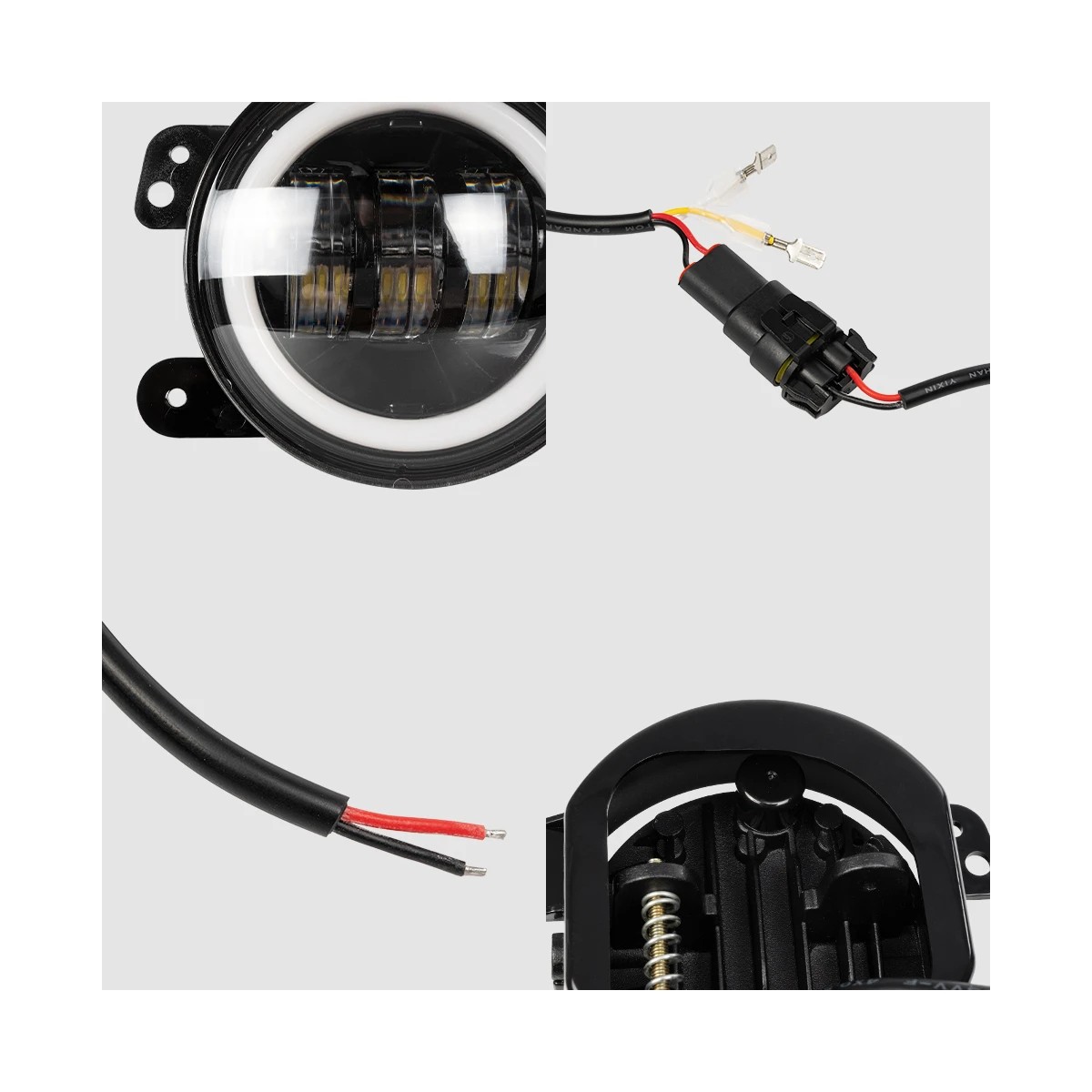 GloboStar® 85418 Σετ 2 x Προβολείς Ομίχλης JEEP WRANGLER – MERCEDES BENZ G CLASS – LAND ROVER DEFENDER – HAMMER H1-H2 – 4” Ιντσών με Ring Light DRL LED CREE CXB COB 100W 7500lm DC 12V Αδιάβροχοι IP66 Ψυχρό Λευκό 6000K