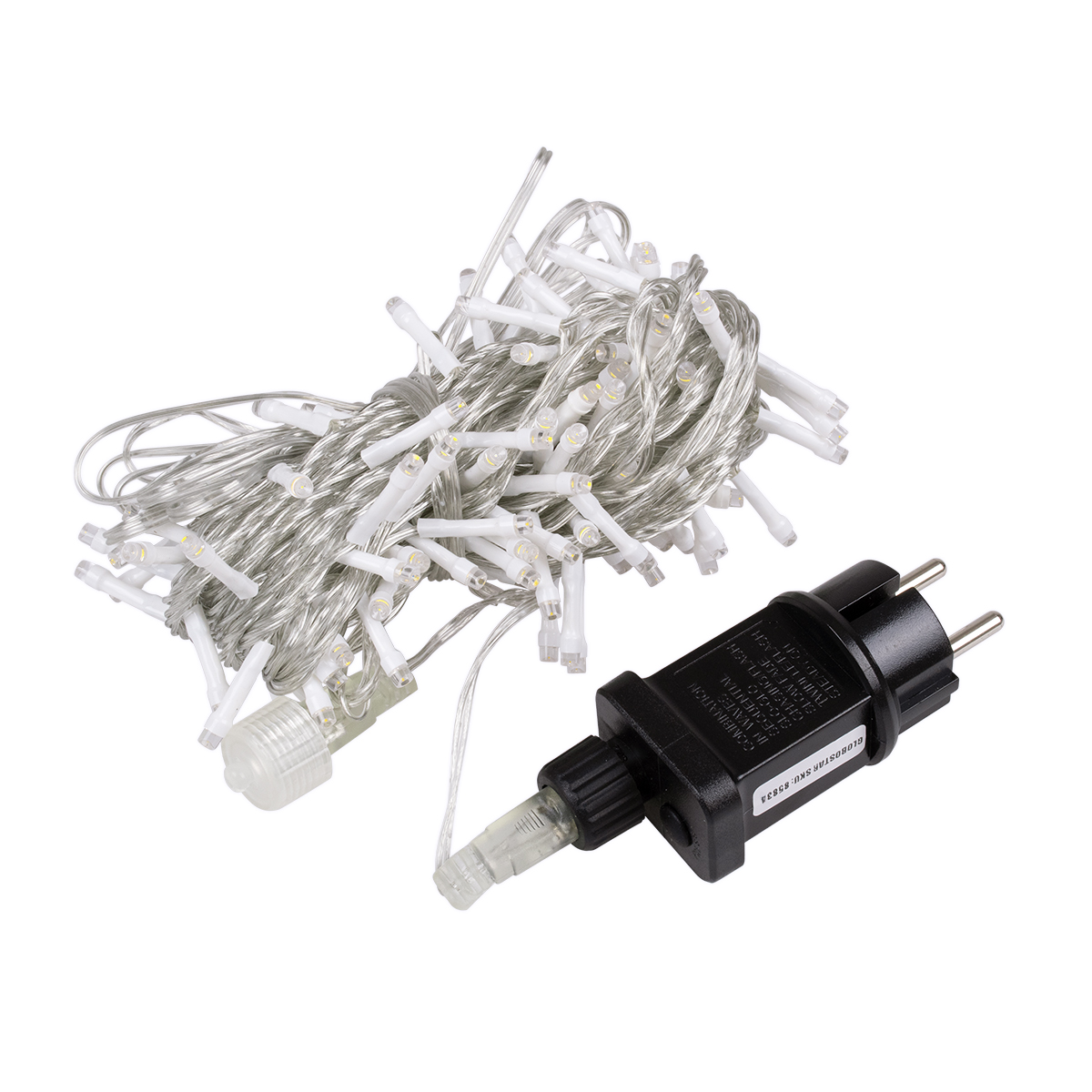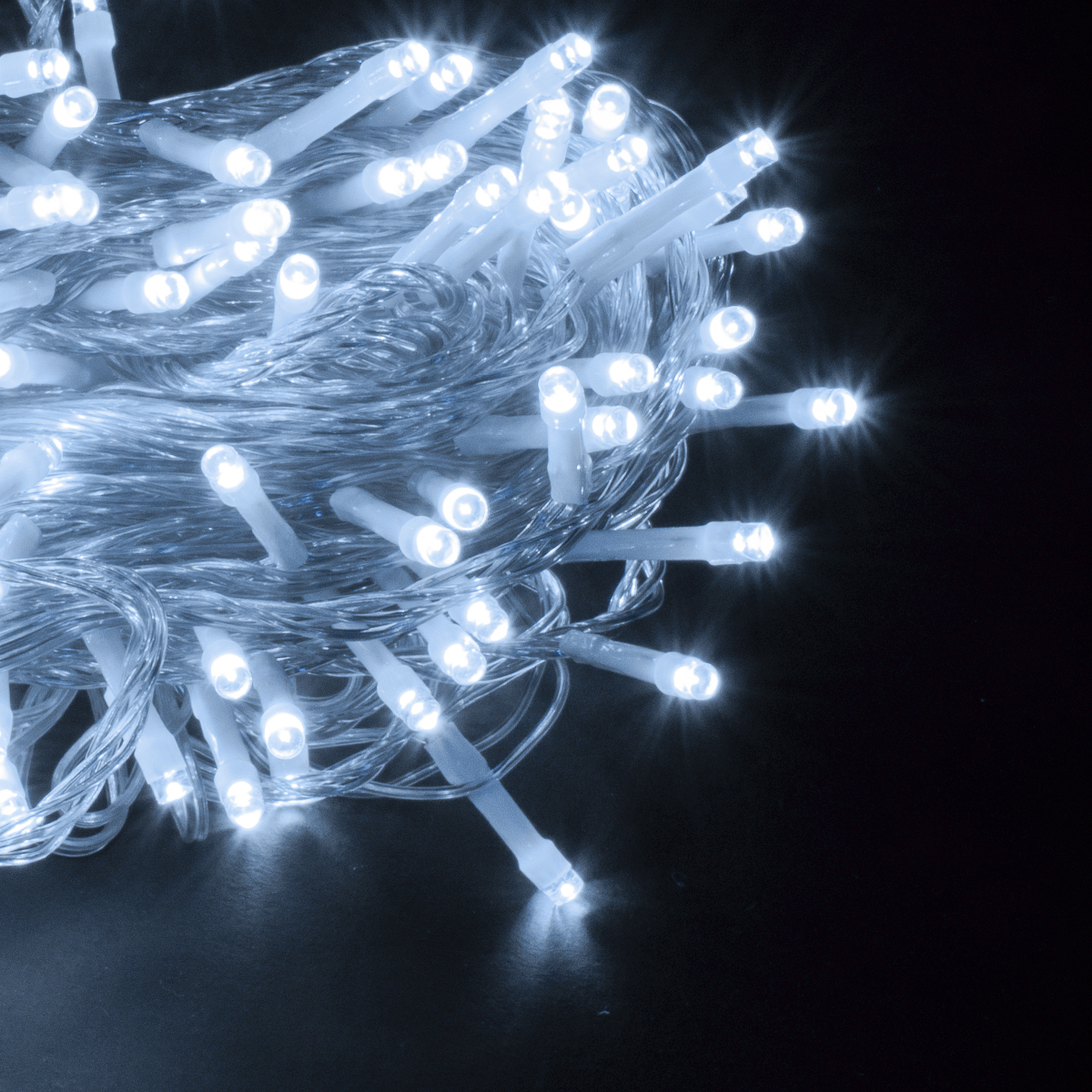 85834 Διακοσμητική Γιρλάντα 13 Μέτρα με Controller 8 Προγραμμάτων Εναλλαγών Φωτισμού – Επεκτεινόμενη 100 LED 3.6W AC 230V με Διάφανο Καλώδιο & Πρίζα Schuko Αδιάβροχη IP44 Ψυχρό Λευκό 6000K Μ13m