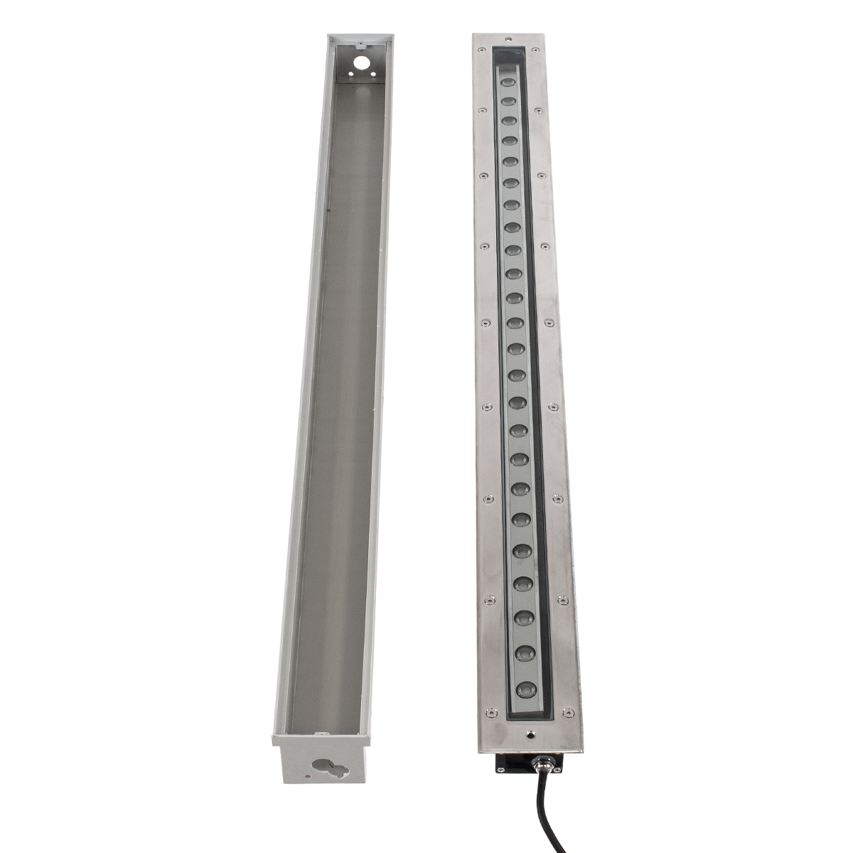 GloboStar® UNDERGROUND-PASSAGGIO 90196 Χωνευτό Φωτιστικό Wall Washer Δαπέδου LED 24W 2160lm 10° DC 24V Αδιάβροχο IP68 με Ρυθμιζόμενη Γωνία Φωτισμού L108 x W9 x H7.5cm Θερμό Λευκό 2700K – Ανοξείδωτο Ατσάλι – 3 Years Warranty