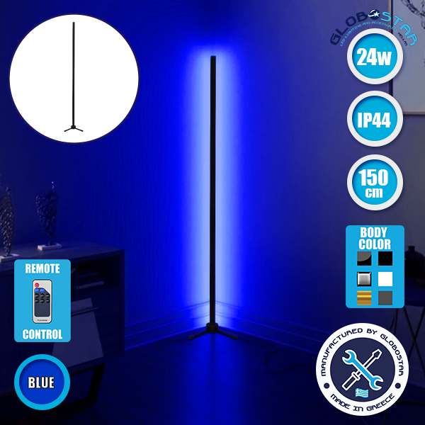 Μοντέρνο Minimal Επιδαπέδιο Μαύρο Φωτιστικό 150cm LED 24 Watt με Ασύρματο Χειριστήριο RF & Dimmer Μπλε GloboStar ALIEN Design GLOBO-150-6