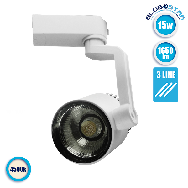 GloboStar S-40042 Διφασικό Bridgelux COB LED Φωτιστικό Σποτ Ράγας 15W 230V 1650lm 24° Φυσικό Λευκό 4500k